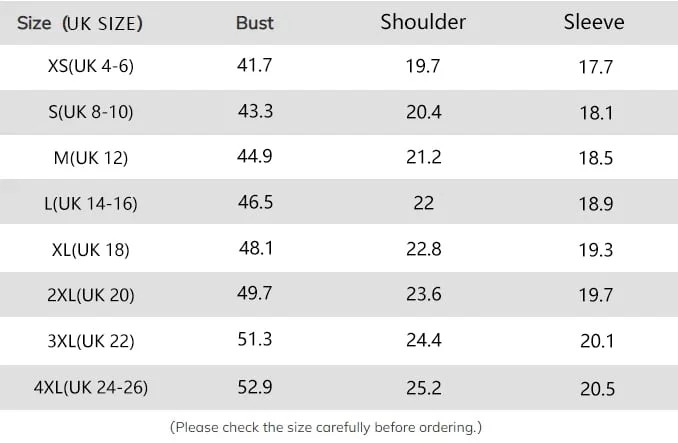 | Bust | 31-32.5" | 32.5-34" | 34-36" | 36-38" | 38-40" | 40-42" | 44-46" | 48-50" | 52-54" |